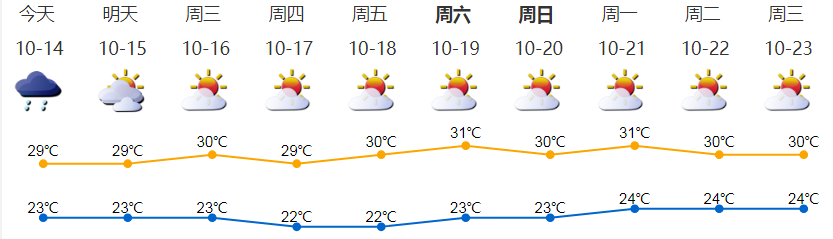 多云,有陣雨;氣溫23-29℃;東北風(fēng)2-3級,沿海、高地和海區(qū)最大陣風(fēng)5-6級;相對濕度65%-95%。