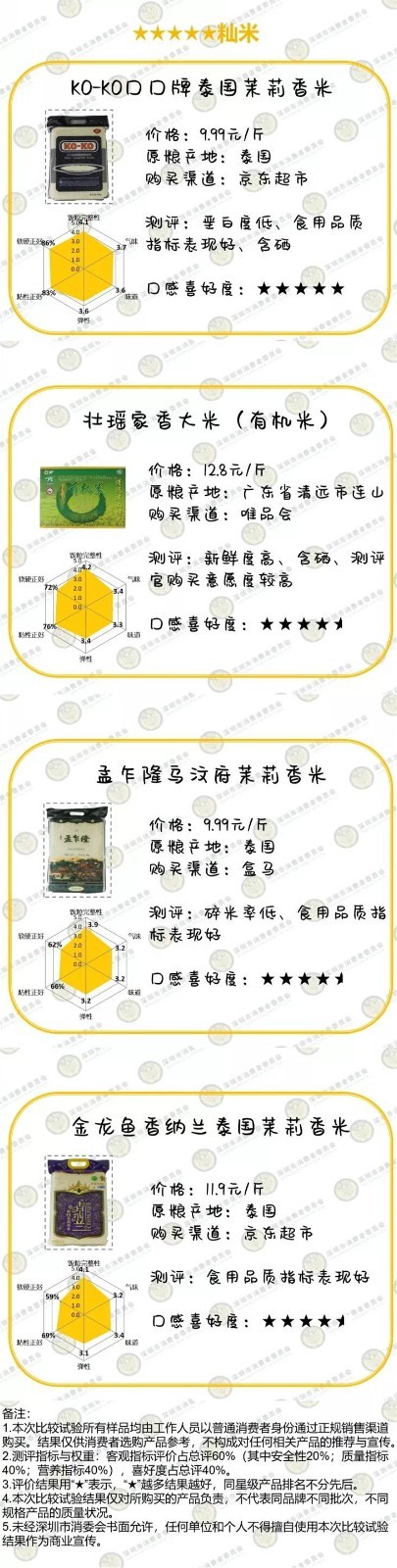 實(shí)驗室檢測的20款大米的4項重金屬均合格,100項農(nóng)藥殘留、黃曲霉毒素B?和石蠟均未檢出,結(jié)果表明,不必?fù)?dān)心大米的農(nóng)藥重金屬等安全問題,大家可以放心地吃!