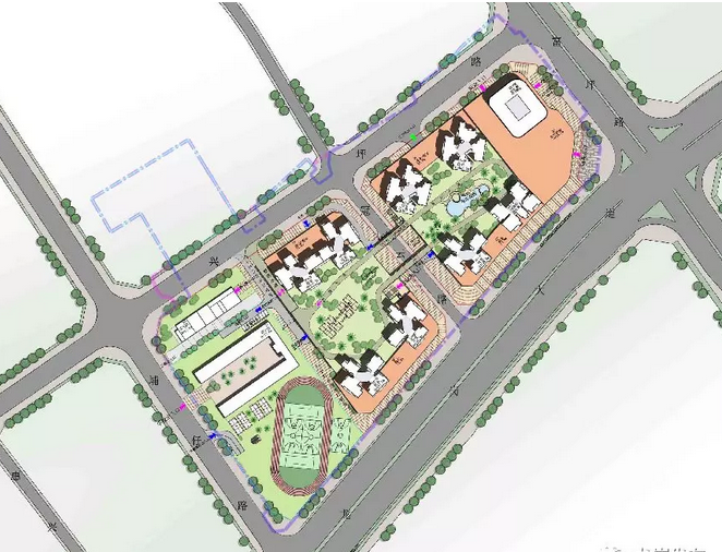 地塊機(jī)動(dòng)車出入口位置由丹荷大道調(diào)整至規(guī)劃南寶路,并在積谷田路新增一個(gè)幼兒園機(jī)動(dòng)車出入口。