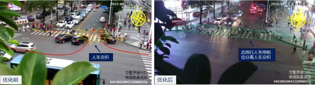 對此,深圳交警于9月11日對該路口進行再優(yōu)化,調整東西向機動車放行方案,分離北面行人與西面左轉車,從而保障北面行人過街安全。優(yōu)化后,該路口東西行行人與同向左轉車分離,行人過街安全更有保障。