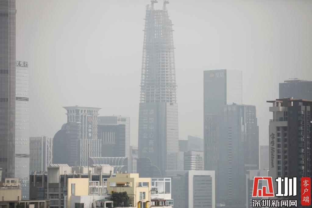 深圳福田區(qū)上空出現(xiàn)輕度灰霾。
