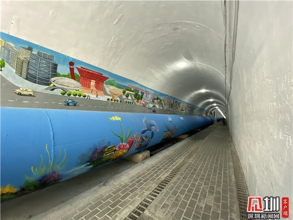 了解到這一情況后,南灣街道立即組織建設(shè)辦和樟樹布社區(qū)工作人員到現(xiàn)場實(shí)地察看、走訪,在征求居民們的意見后,決定對這條隧道進(jìn)行全面整治、涂鴉,并于今年9月進(jìn)場開始重建、翻新該條隧道。該街道先后組織了施工隊(duì)員20余名,經(jīng)過40余天全封閉到半封閉的專業(yè)施工工作,先后完成路面鋪設(shè)、照明系統(tǒng)升級、安裝監(jiān)控設(shè)備、以及全面粉刷等,并進(jìn)行了全面涂鴉,內(nèi)容既有新中國的人文發(fā)展,也有栩栩如生的海洋動物、化腐朽為神奇的山水畫等等,實(shí)現(xiàn)了隧道環(huán)境和“五彩繽紛美麗樟樹布”理念的和諧統(tǒng)一。該隧道已于今年10月底正式對周邊居民群眾開放。