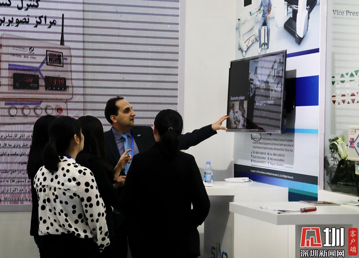 一帶一路專區(qū),一位外國(guó)參展商正在介紹產(chǎn)品。