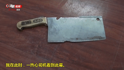 一把明晃晃的菜刀剛好砍進車門縫里。