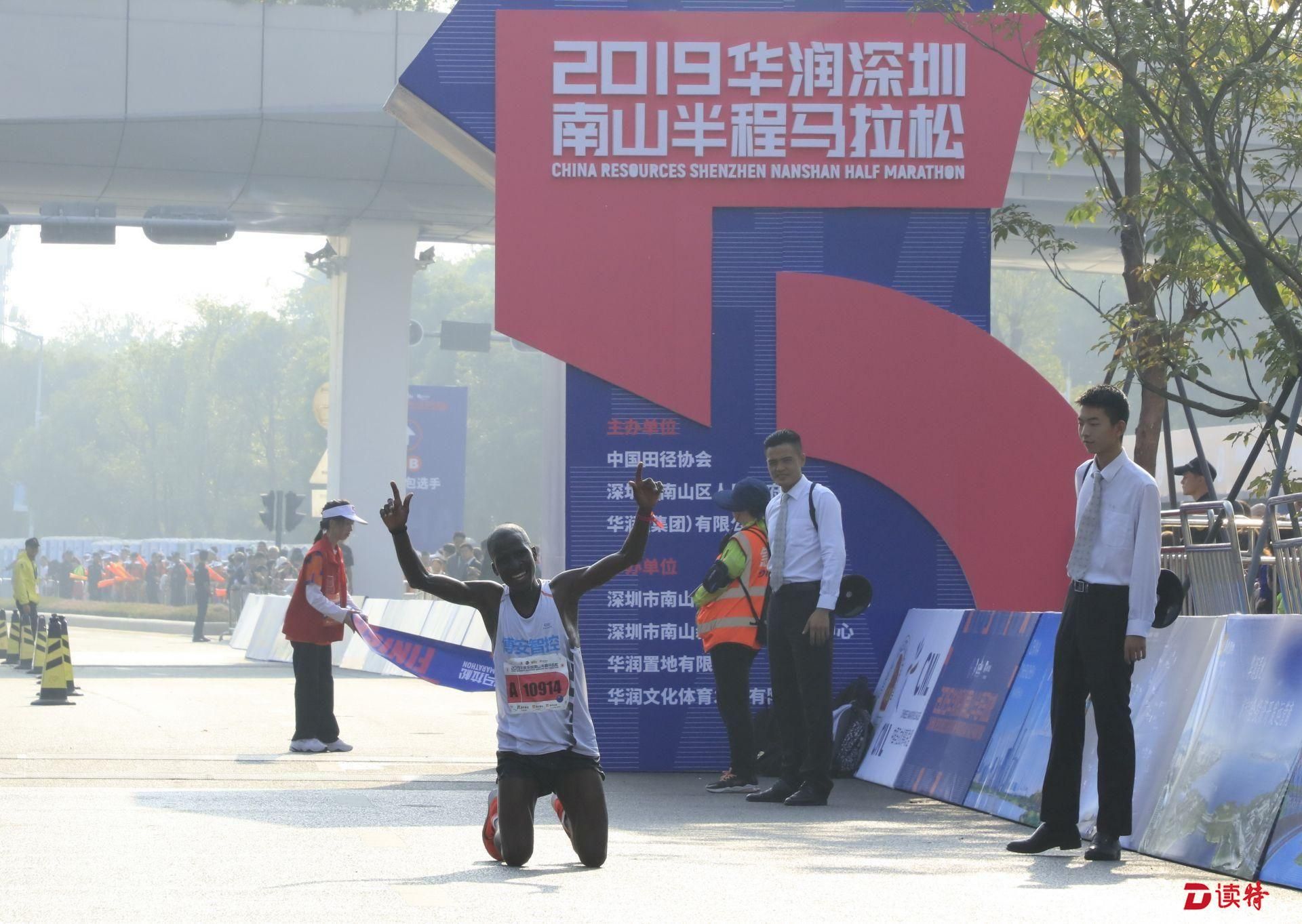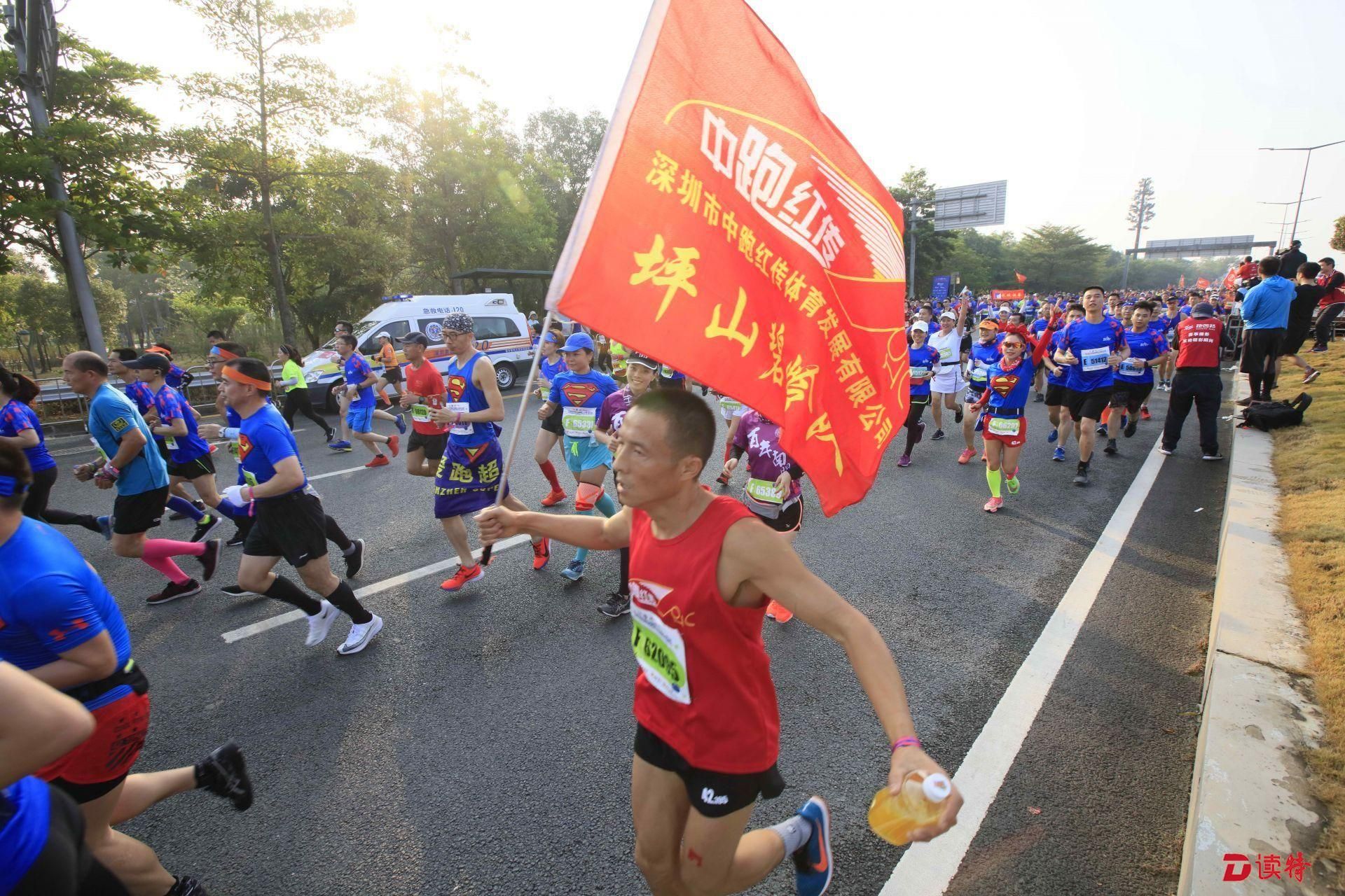 8點鳴槍,1.6萬名參賽選手準時開跑,由深圳人才公園東門出發(fā),途徑南山區(qū)多個地標建筑,向終點華潤深圳灣體育中心奔跑。經過一番激烈的角逐,9點過,有選手率先抵達終點,男女組冠亞季軍陸續(xù)誕生。