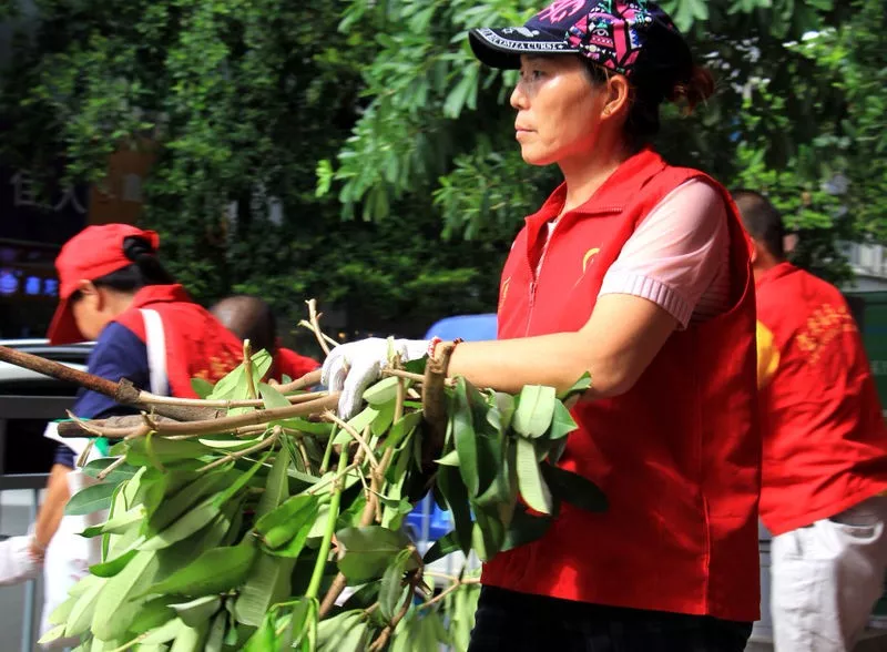 ▲“紅馬甲”清潔臺風“山竹”過后的街道