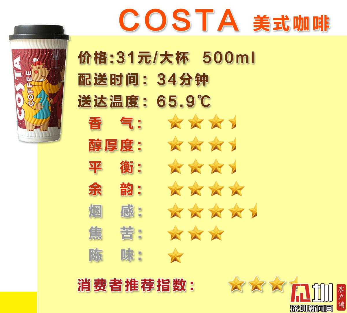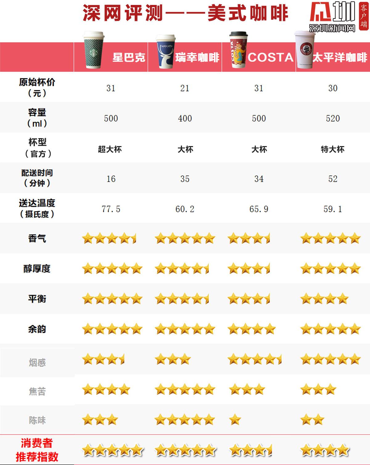 星巴克、瑞幸、太平洋星級較高,,Costa陳味較重僅獲三星半