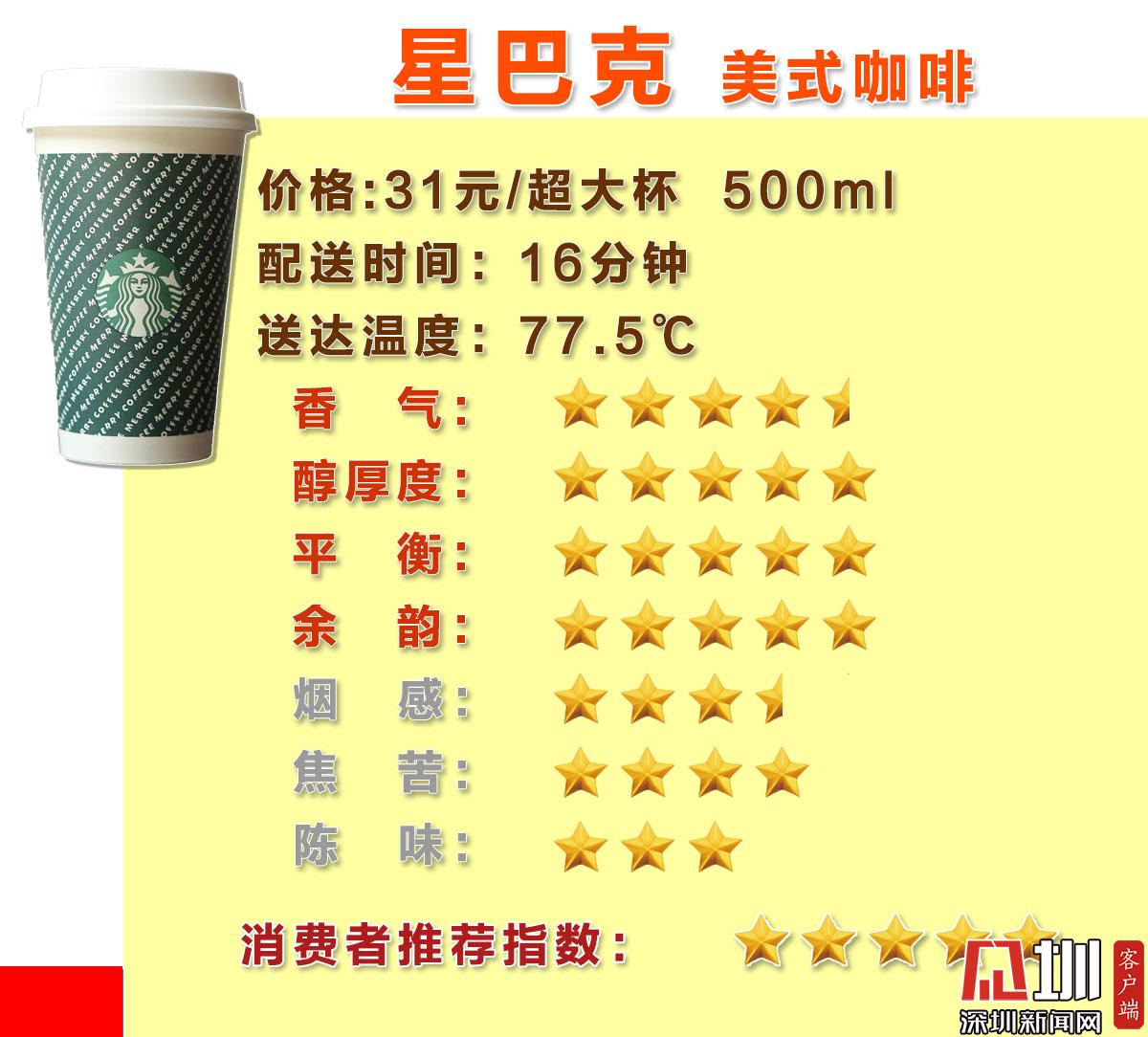 在客觀評測環(huán)節(jié),測評小組同樣圍繞咖啡單價、容積、配送時間、溫度、包裝等5個維度對四款品牌的“美式(熱)”咖啡進(jìn)行了測評。
