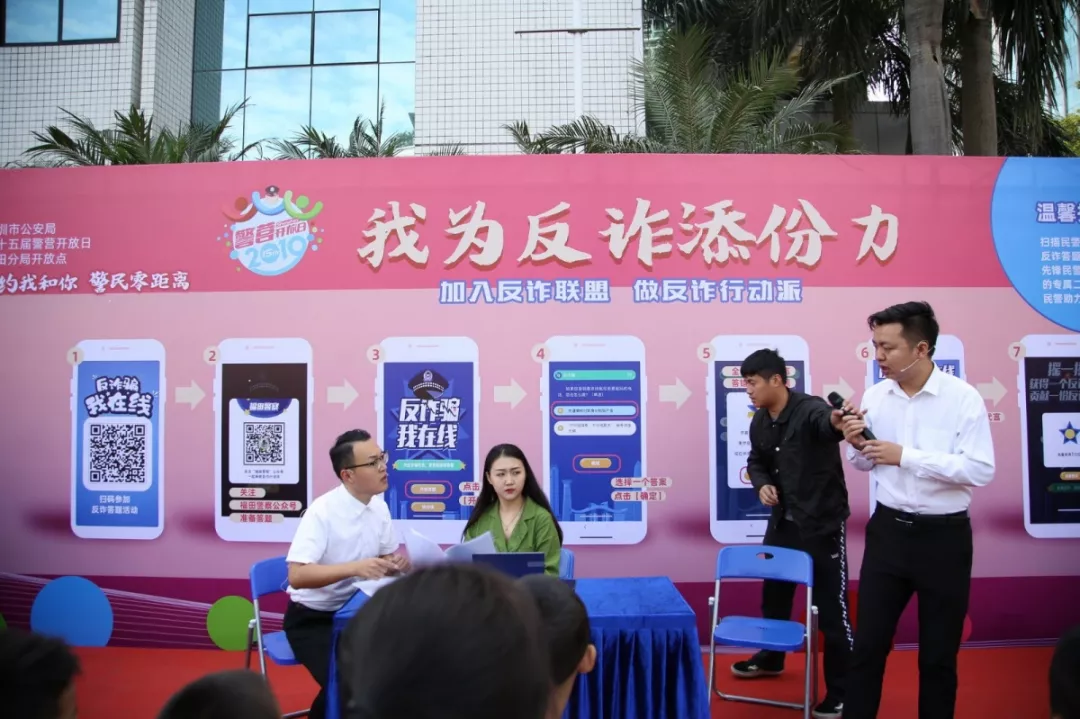 警民同心,全民防騙;人人反詐,共建平安!福田警察推出“反詐騙我在線”線上微程序,向廣大市民倡議誠邀:加入反詐聯(lián)盟,一起為反詐騙代言,做反詐騙行動派!相聲、小品等文藝表演的形式也搬上了反詐騙宣傳的舞臺,以寓教于樂的方式提高了市民的防范意識。