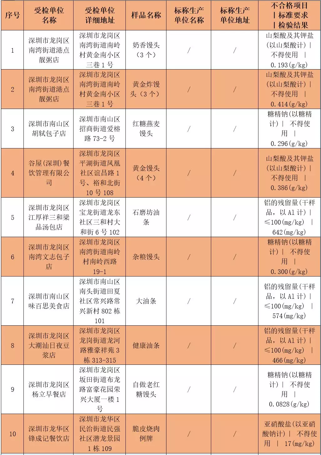 本次不合格食品具體信息如下