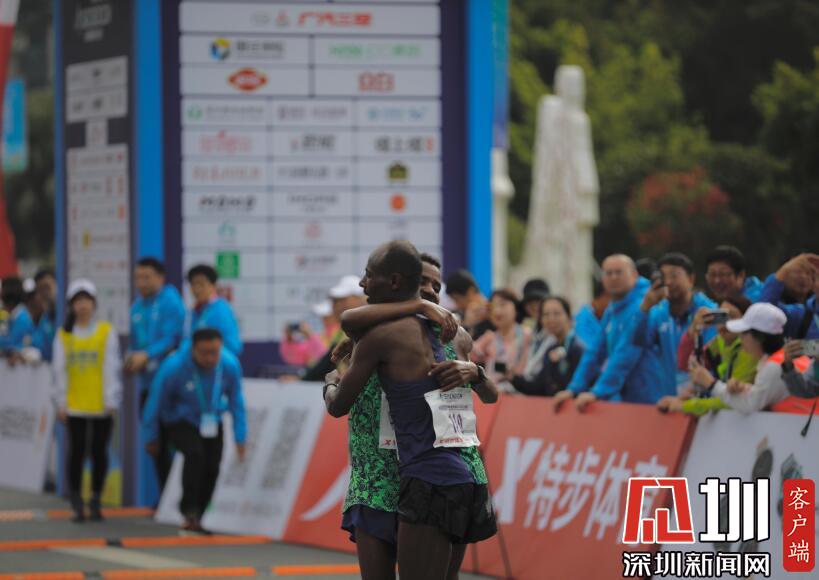 全程男子冠軍Tadese Tola Woldegeberel和第二名獲獎(jiǎng)?wù)邠肀А?/p>