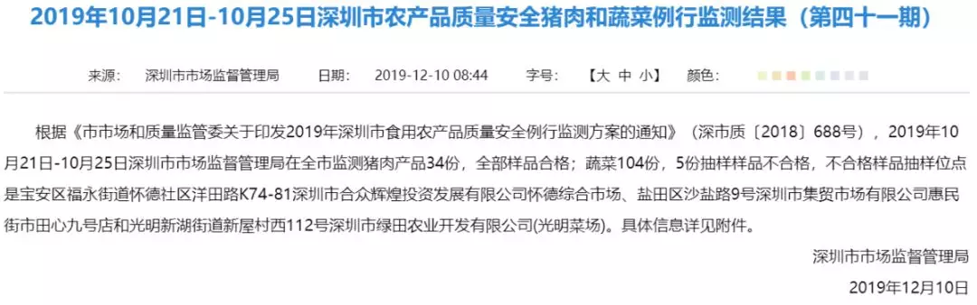 豬肉和蔬菜例行監(jiān)測結果