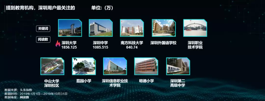 數(shù)據(jù)顯示,深圳大學(xué)、深圳中學(xué)和南方科技大學(xué)這三所教育機(jī)構(gòu)最受深圳網(wǎng)友關(guān)注。今年深圳在補(bǔ)齊教育短板上的力度繼續(xù)加大,尤其是在《意見》支持深圳在教育體制改革方面先行先試,高標(biāo)準(zhǔn)辦好學(xué)前教育,擴(kuò)大中小學(xué)教育規(guī)模,高質(zhì)量普及高中階段教育,充分落實(shí)高等學(xué)校辦學(xué)自主權(quán),加快創(chuàng)建一流大學(xué)和一流學(xué)科,打造現(xiàn)代職業(yè)教育體系后,深圳教育的進(jìn)步發(fā)展,未來可期。