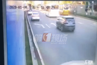 《第一現(xiàn)場》記者立即趕到事發(fā)地點(diǎn),看到有軌電車旁邊的2扇護(hù)欄被小車撞掉了,事發(fā)現(xiàn)場用警戒線圍著。監(jiān)控畫面顯示,今天下午16點(diǎn)48分,一輛黑色奔馳轎車在行駛過程中,突然騎上道路左邊的路沿石,撞倒了護(hù)欄之后,再撞到有軌電車。