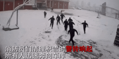 有幾名消防員不小心摔了個(gè)“屁股蹲兒”,