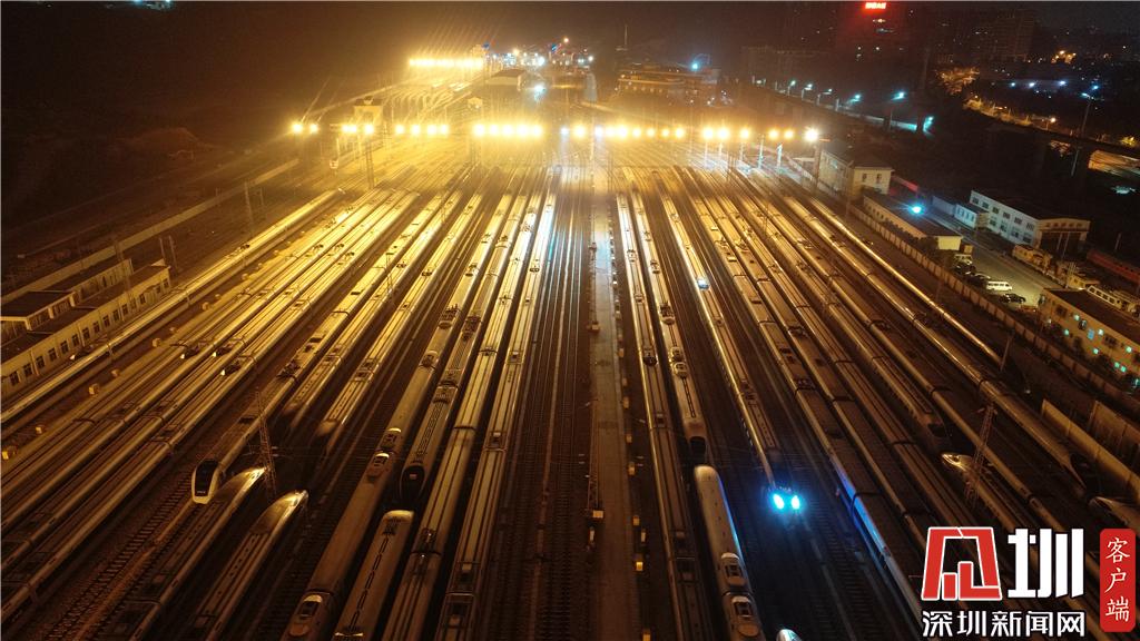 深圳北動車運用所內(nèi)的高鐵列車。