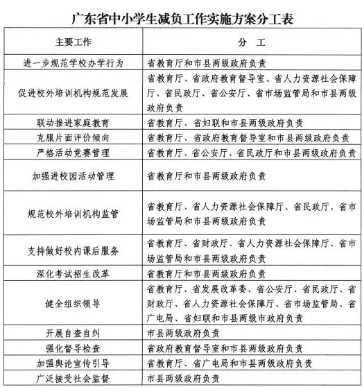 廣東省中小學(xué)生減負(fù)工作實(shí)施方案