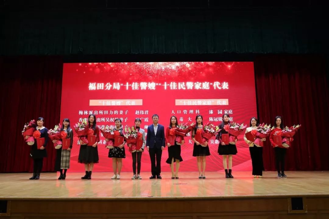 ▲區(qū)委副書記、區(qū)長黃偉為“十佳警嫂”“十佳民警家庭”頒獎