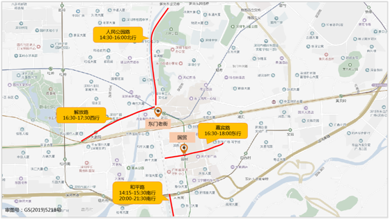 預(yù)計(jì)國(guó)貿(mào)-東門老街片區(qū)春節(jié)假期周邊主要擁堵路段有解放路(16:30-17:30西行)、人民公園路(14:30-16:00北行)、嘉賓路(16:30-18:00東行)、和平路(14:30-15:30南行、20:00-21:30南行)。具體分布如下: