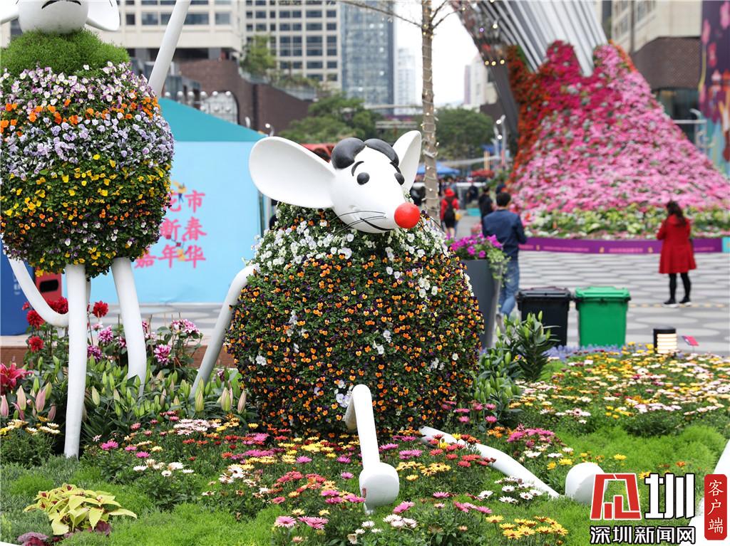 花市主會(huì)場(chǎng)布置有鼠年為主題的花藝。