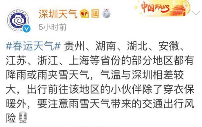 回家過(guò)年在路上的小伙伴們可要注意了,@深圳天氣提醒大家: