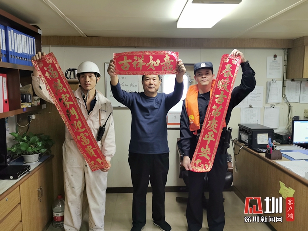 深圳灣邊檢站民警現(xiàn)場揮毫潑墨寫下祝福。