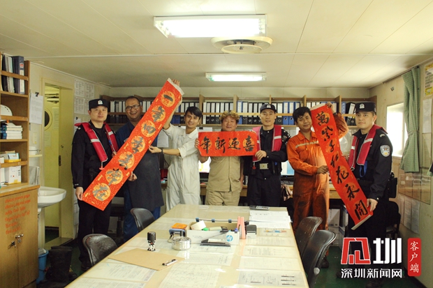 為了讓國際船舶上工作的中國籍船員感受到濃厚的春節(jié)氣息,鹽田邊檢站開展“迎春送?!钡禽喿咴L活動。在實施登輪檢查的同時,向國際船舶上的中國籍船員贈送春聯(lián)、燈籠、中國結(jié)等節(jié)慶用品,將中國的“年”送上國際船舶,向船員送上新春祝福、節(jié)日問候。