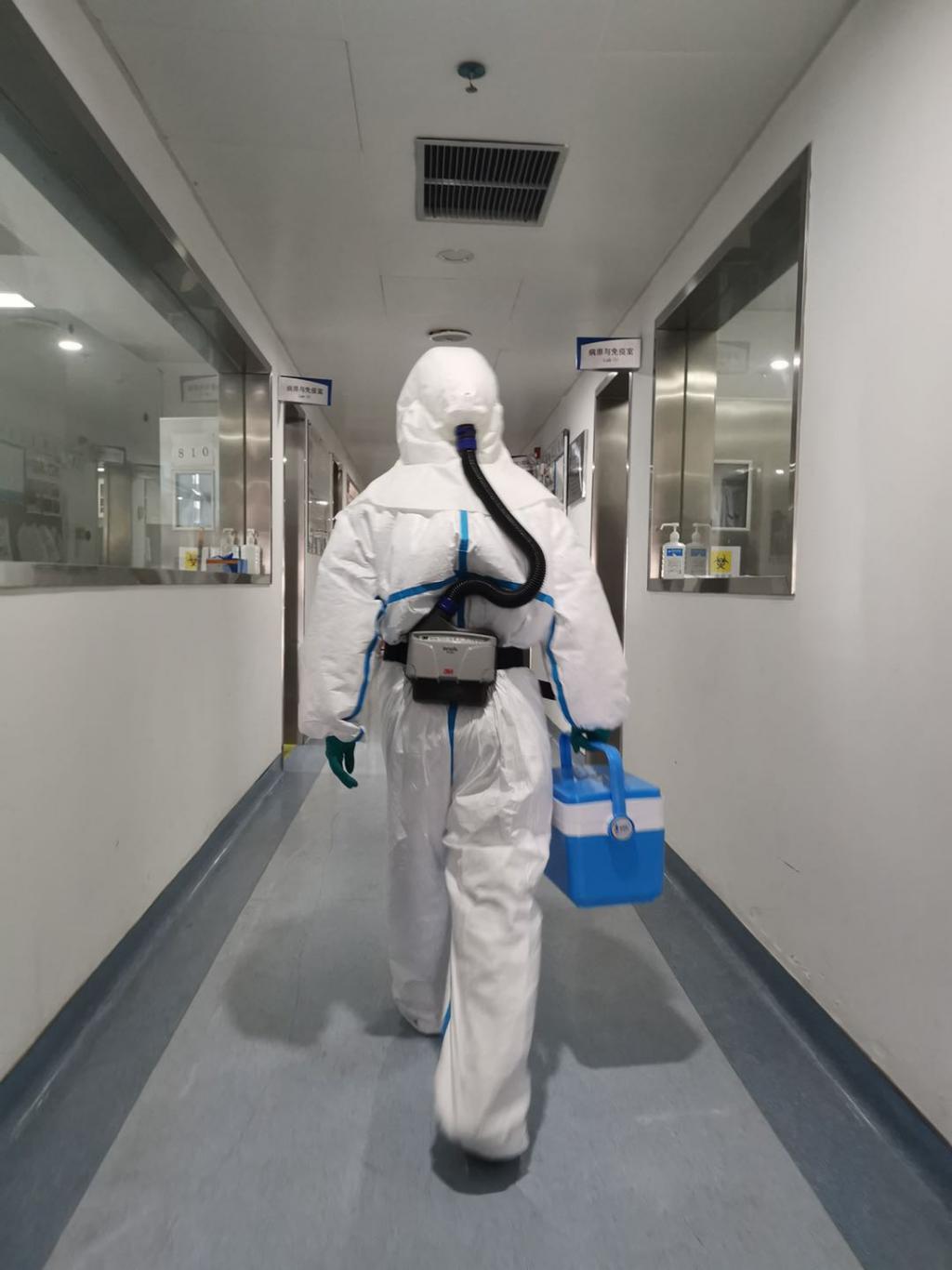 ▲大年三十,深圳市第三人民醫(yī)院實(shí)驗(yàn)室正在進(jìn)行確診患者的病毒載量動(dòng)態(tài)檢測(cè),他們?cè)诓僮鞯臅r(shí)候穿著重達(dá)3至4斤的個(gè)人防護(hù)裝備,進(jìn)去一次就連續(xù)工作4個(gè)小時(shí)左右,每次出來內(nèi)衣全部濕透。