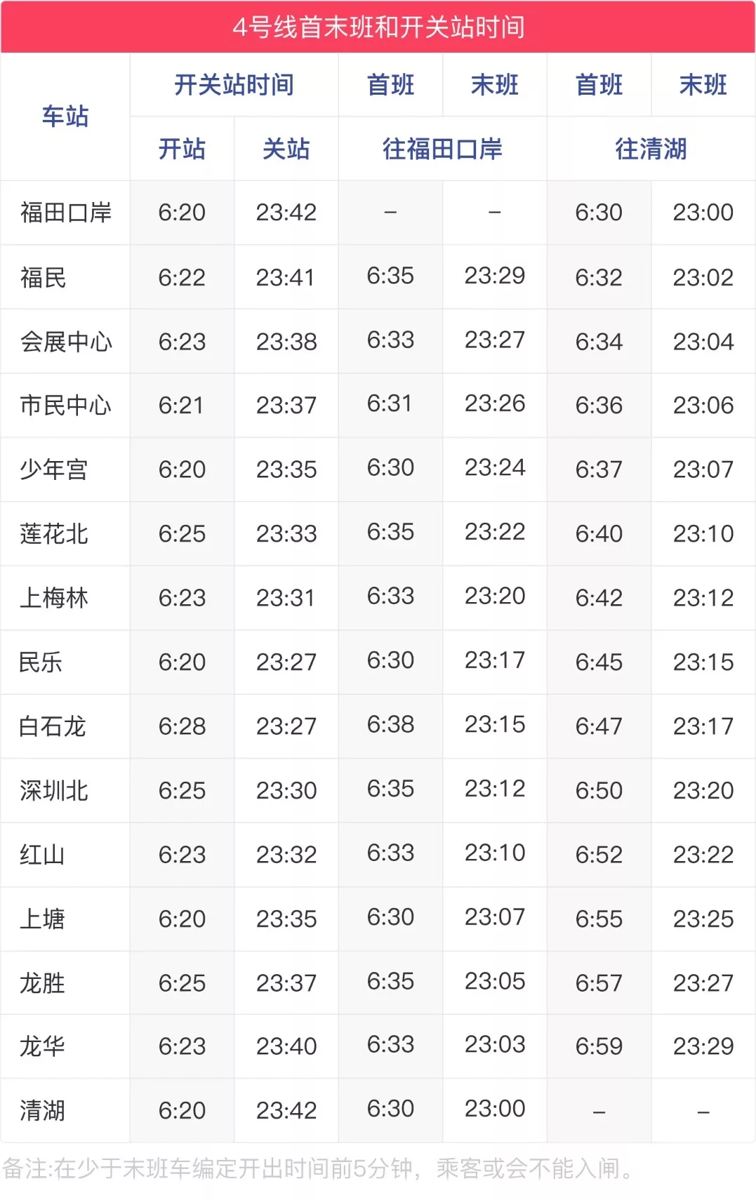 4號(hào)線運(yùn)營時(shí)刻表