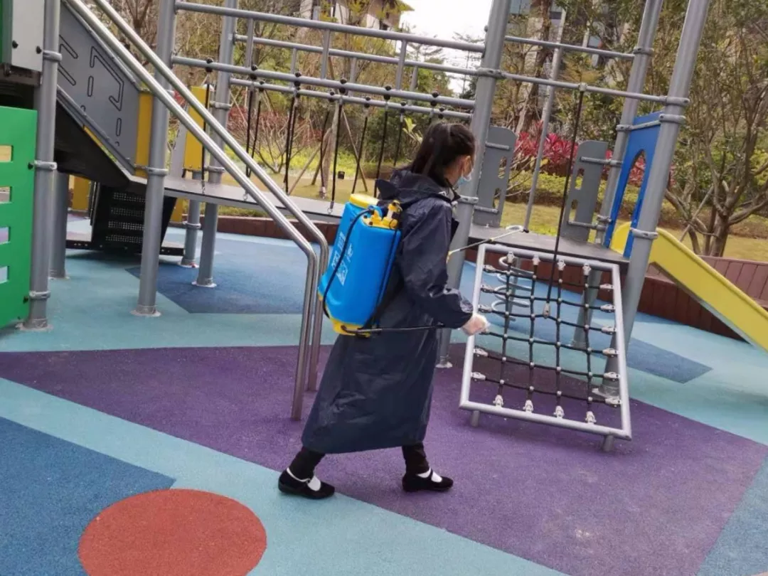 為防止病毒滋生,根據(jù)小區(qū)情況做好消殺方案,加大消殺頻次及范圍,對小區(qū)樓道、園區(qū)、兒童游樂場、垃圾放置點進行反復(fù),全面消殺消毒工作。