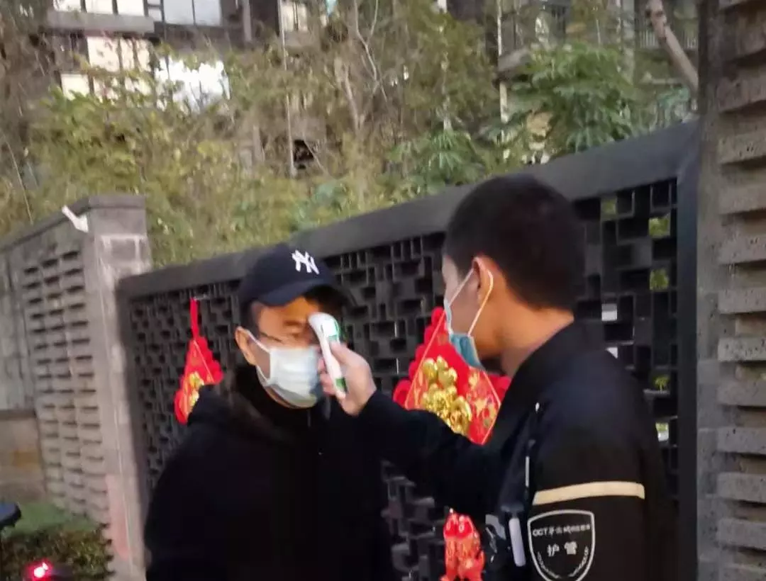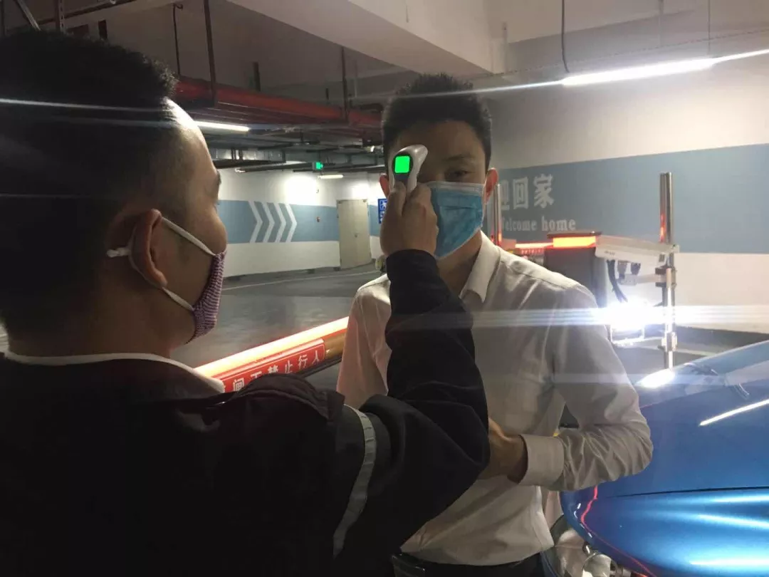 對車輛和人員出入取消刷卡自動開閘,改為手動出入開閘,禁止外來人員出入;門口、車道崗配備測溫儀,對所有進出小區(qū)人員進行體溫測量,并做好登記。