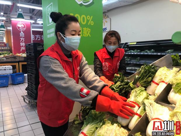 42歲的于文平和45歲的于文華是一對姐妹,兩人同時也是深圳市食藥志愿總隊的志愿者,這次聽到商超需要志愿者幫忙的消息后,她們便迅速的在志愿者群里報了名,來到超市幫忙。