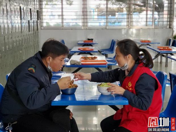 顏雁鳴和劉文菊在車隊(duì)食堂吃午飯