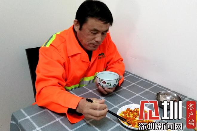 胡蘿卜丁炒玉米,再加一碟土豆絲下飯,這就是黃學(xué)志的午餐。黃學(xué)志說,他有幾年沒回老家了,本來計劃春節(jié)回去過年,順便帶老伴看病,沒想到疫情越來越嚴(yán)重,于是就打消了這個念頭。疫情發(fā)生以來,除了日常工作,他還要負責(zé)為值班同事普及疫情防控知識的任務(wù)。從早上7點半到12點半,下午1點半到5點半,他每天在沙頭角7個垃圾轉(zhuǎn)運站、18個公廁來回奔走,給同事配送口罩及消毒用品,檢查他們的身體健康情況?!艾F(xiàn)在是疫情防控關(guān)鍵期,我們也希望為防控工作貢獻出來自環(huán)衛(wèi)清潔行業(yè)的一份力量。”黃學(xué)志說。(見圳客戶端、深圳新聞網(wǎng)記者鄧雪婷)