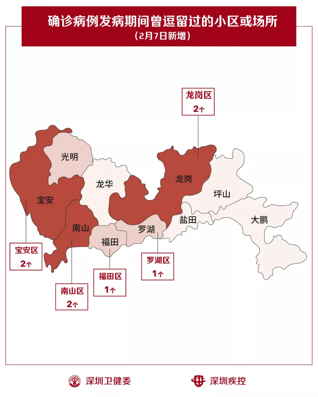 2月7日,疾控專業(yè)人員通過(guò)最新的流行病學(xué)調(diào)查確認(rèn),深圳新增8個(gè)小區(qū)(場(chǎng)所),有新確診的病人在出現(xiàn)病征期間曾經(jīng)逗留。
