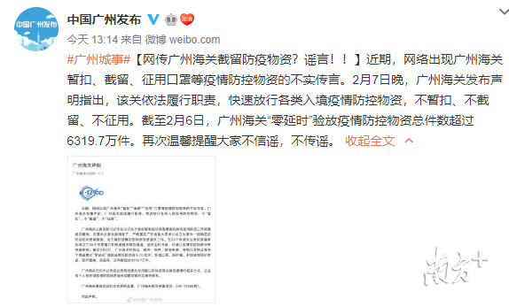廣州海關(guān)截留疫情防控物資?