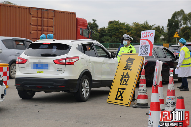 民警李勝仁(右一)在深汕高速龍崗服務(wù)區(qū)(金錢坳立交)檢查卡點(diǎn)值守。