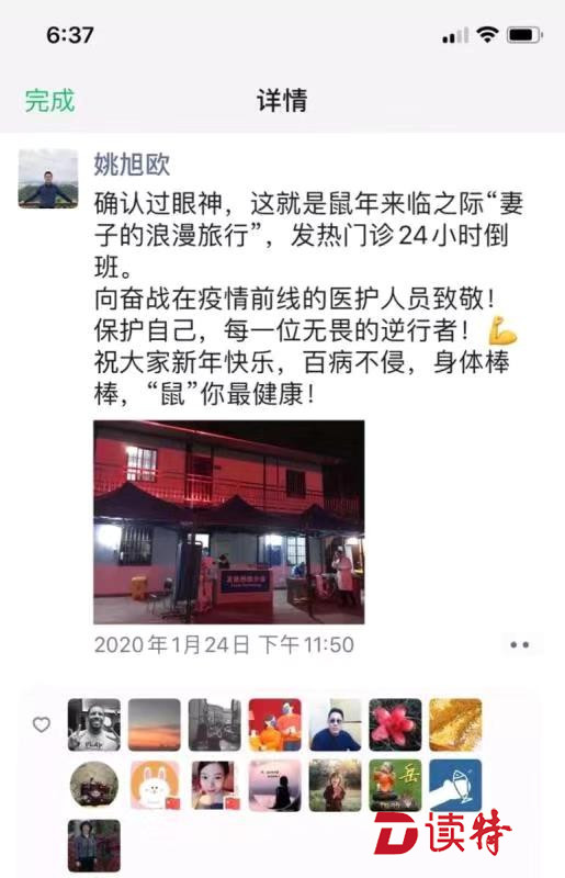 丘宇和姚旭歐兩人都是戰(zhàn)疫一線的衛(wèi)健系統(tǒng)雙職工,他們把對(duì)對(duì)方的關(guān)懷和愛意,在朋友圈表達(dá)得浪漫而動(dòng)人。