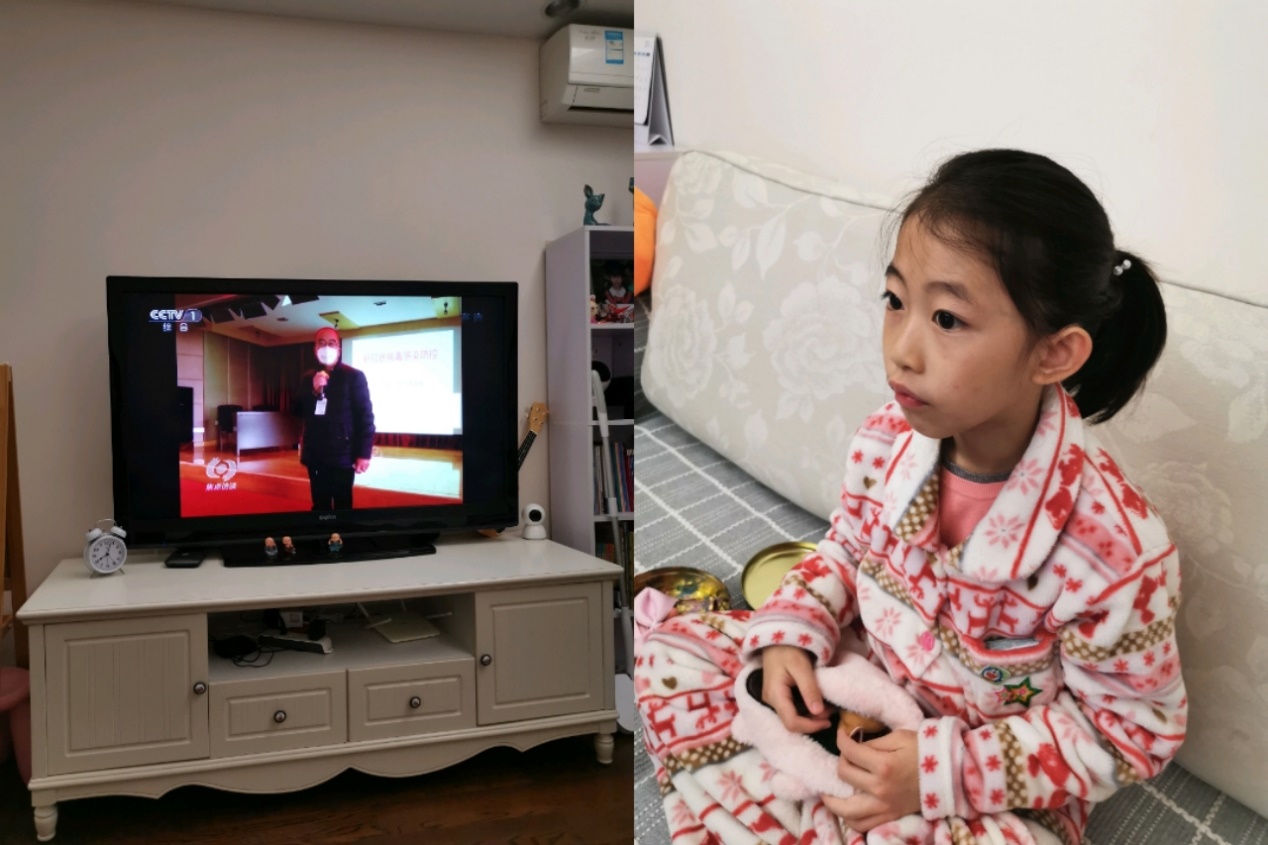 晚上固定時(shí)間一家人看新聞和焦點(diǎn)訪談,有時(shí)候有些好的文章,我們會(huì)讀給她聽。