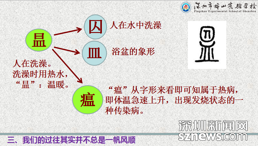 坪山實(shí)驗(yàn)學(xué)校校長安國強(qiáng)校通過“說文解字”的形式生動(dòng)講解了“瘟”與“疫”的字義,讓大朋友和小朋友們都理解了瘟疫爆發(fā)時(shí)的可怕性與嚴(yán)重性。他還從歷史的角度讓同學(xué)們了解人類與自然災(zāi)害斗爭(zhēng)的過往。