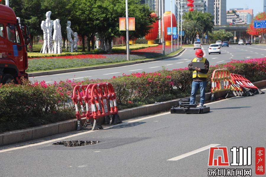 深圳市民廣場(chǎng)前一輔路驚現(xiàn)直徑一米坑 有關(guān)部門:正加緊修復(fù)