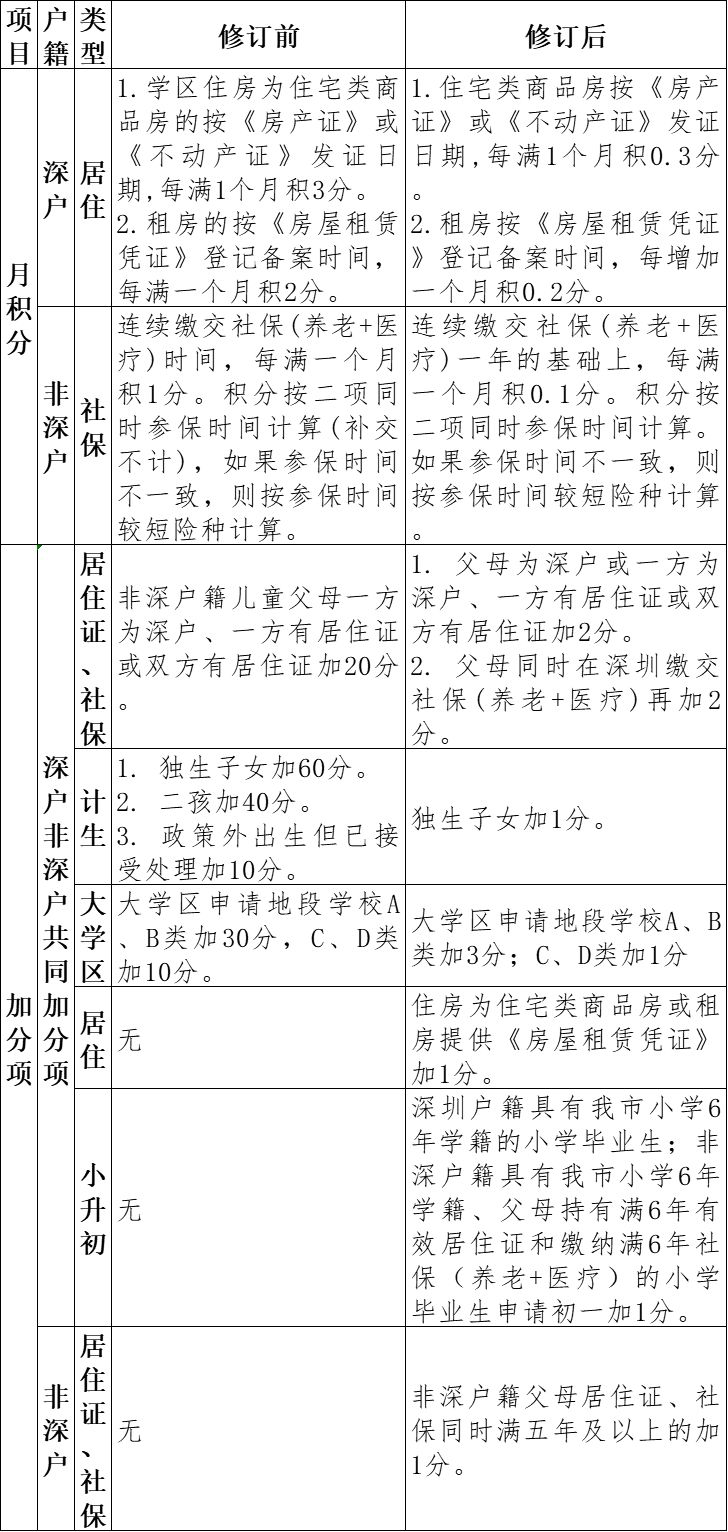 (1)深圳戶(hù)籍購(gòu)房從每滿1個(gè)月積3分,調(diào)整為積0.3分;租房從每滿1個(gè)月積2分,調(diào)整為0.2分。