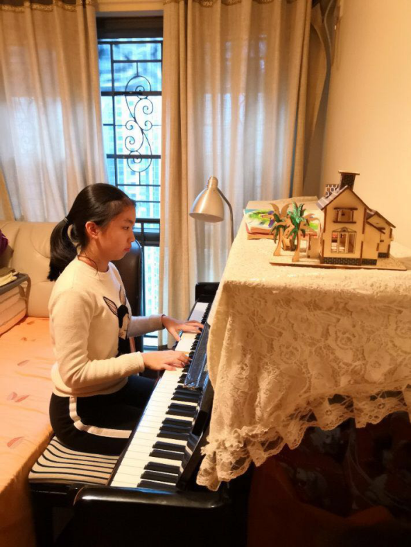 創(chuàng)作過程中,凃依舟遇到不少瓶頸。“靈感來時,我先彈出來,再記下來。但當(dāng)化作音符時,卻找不到當(dāng)時的旋律了?!眱蛞乐壅f。為解決難題,爸爸凃永剛不斷為女兒支招?!斑厪椷呁晟?。不用刻意去渲染,真情流露就是最飽滿地創(chuàng)作?!眱蛴绖倢ε畠赫f。一周后,《在遠(yuǎn)處想著你》完成了?!拔覀兎浅VС謨蛞乐圩鲞@件事,看到全國都在為武漢加油,很感動,希望疫情早點結(jié)束。”凃永剛說。