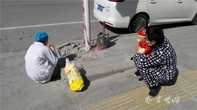 19日中午,鄖西店子鎮(zhèn)衛(wèi)生院女護士江世娥乘救護車從鄖西店子鎮(zhèn)轉運一腦梗病人到鄖西縣人民醫(yī)院,途經家門不能回家,在路邊蹲地吃婆婆煮的餃子,丈夫和9個月大的兒子兩米外相望的淚目場景。