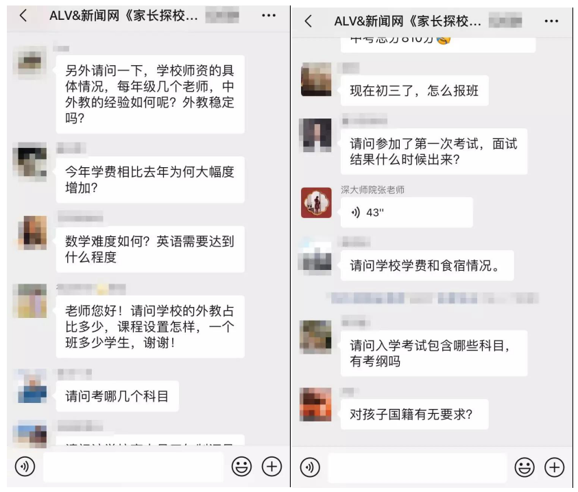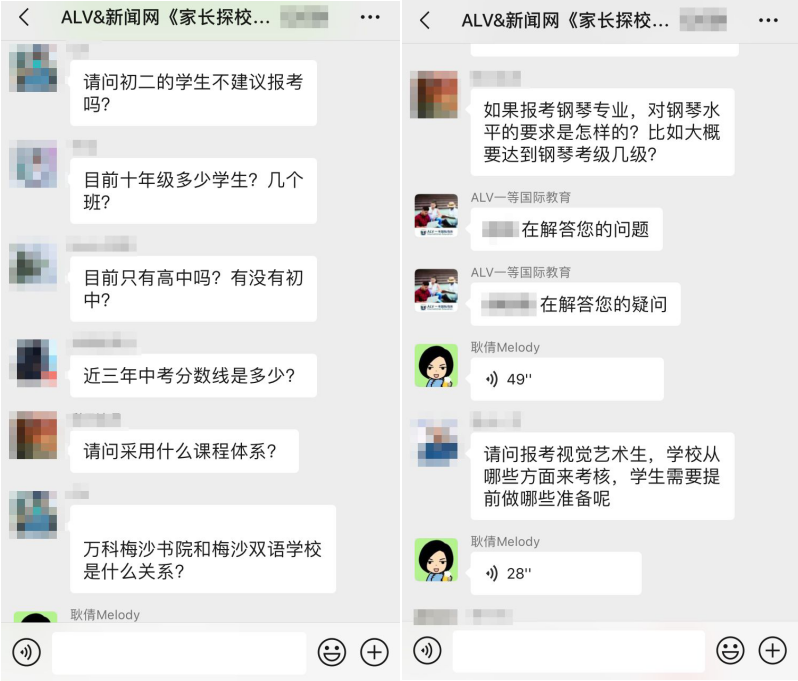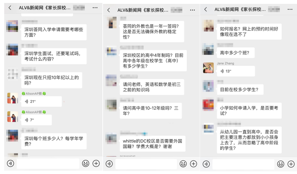 據(jù)介紹,在這三場探校活動中,招生官耐心而又細致的逐一為家長答疑解惑,贏得家長對本次活動的高度認可。以下為“家長探校團”微信群內互動截圖: