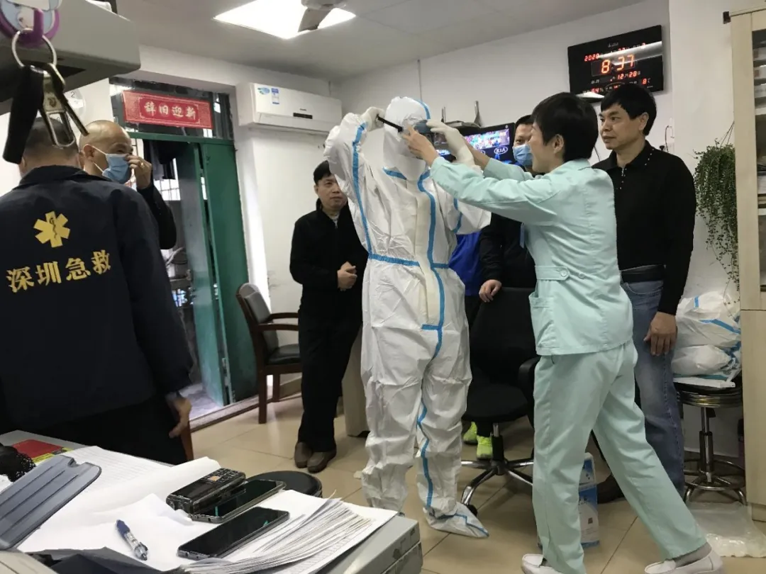 深圳市五一勞動(dòng)獎(jiǎng)?wù)芦@得者楊冬云正培訓(xùn)醫(yī)護(hù)人員穿脫隔離衣。