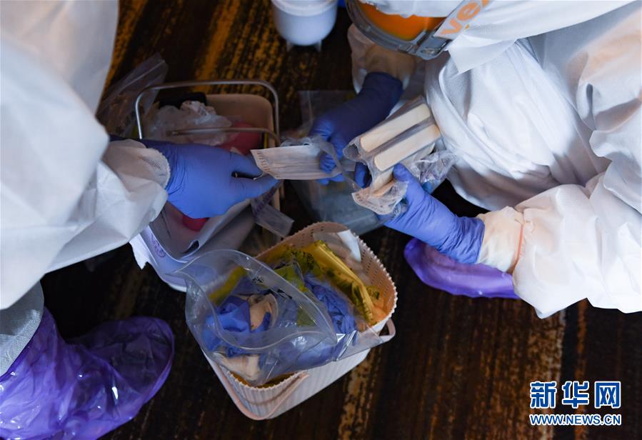 2月27日,在深圳龍崗的一家“健康驛站”,酒店工作人員為留觀人員和醫(yī)護人員準備午餐。 新華社記者 毛思倩 攝