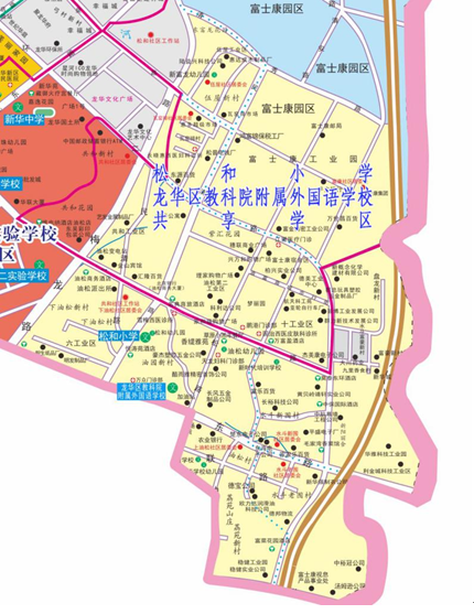 龍華區(qū)教育科學(xué)研究院附屬外國語學(xué)校小學(xué)部與松和小學(xué)、初中部與新華中學(xué)共享學(xué)區(qū)范圍,兩校在共享學(xué)區(qū)范圍內(nèi)統(tǒng)籌招生。