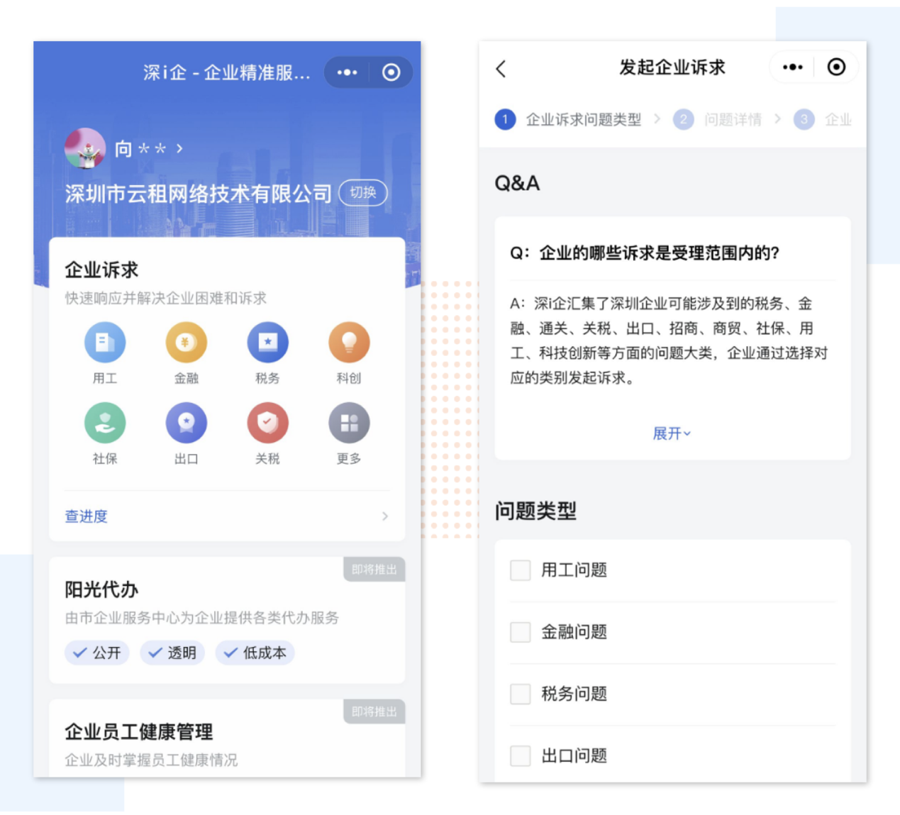 未來,“深i企-精準服務企業(yè)”平臺還將繼續(xù)拓寬服務范圍,深化服務內容,將陸續(xù)推出,如由市企業(yè)服務中心為企業(yè)提供的各類代辦服務、企業(yè)員工健康管理等實用功能,著力解決企業(yè)在疫情防控、復工復產等方面遇到的問題和困難,為企業(yè)提供更多優(yōu)質服務。