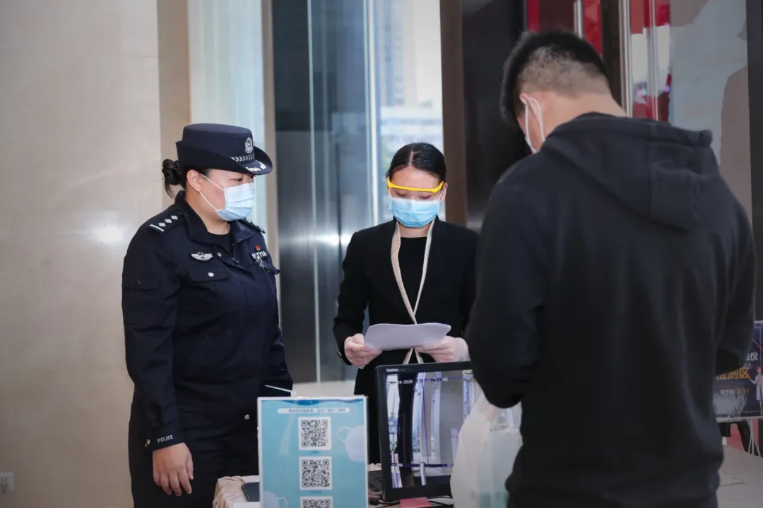 梅林店鋪約3000余家,隨著復工企業(yè)越來越多,防控工作也面臨不小挑戰(zhàn)。卓悅匯商鋪多、人流大,民警聯(lián)合街道、工作站、安監(jiān)等部門防疫檢查時,發(fā)現(xiàn)商場使用手持測溫儀,效率不高,易造成排隊聚集。為解決這個難題,田晶瑩多方奔走,聯(lián)合社區(qū)民警與商場負責人多次溝通。